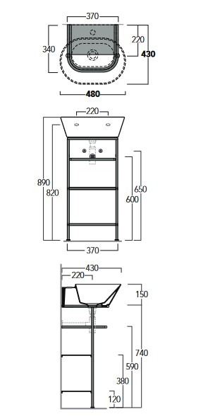 Simas Wave Stelaż wolnostojący pod umywalkę WA06 37x34x74 cm nero matt WASA06