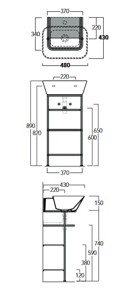 Simas Wave Stelaż wolnostojący pod umywalkę WA08 37x34x74 cm nero matt WASA08