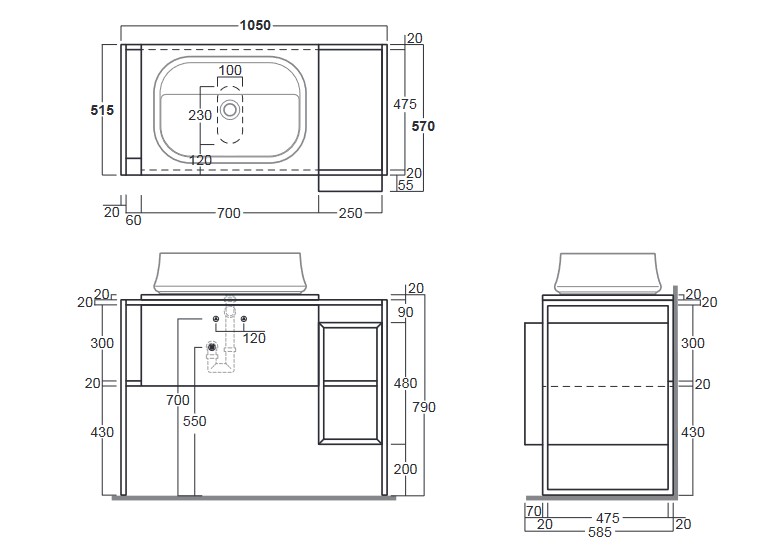 Simas Sharp Szafka umywalkowa 105x57x72 cm frassino grigio/bianco matt FM1