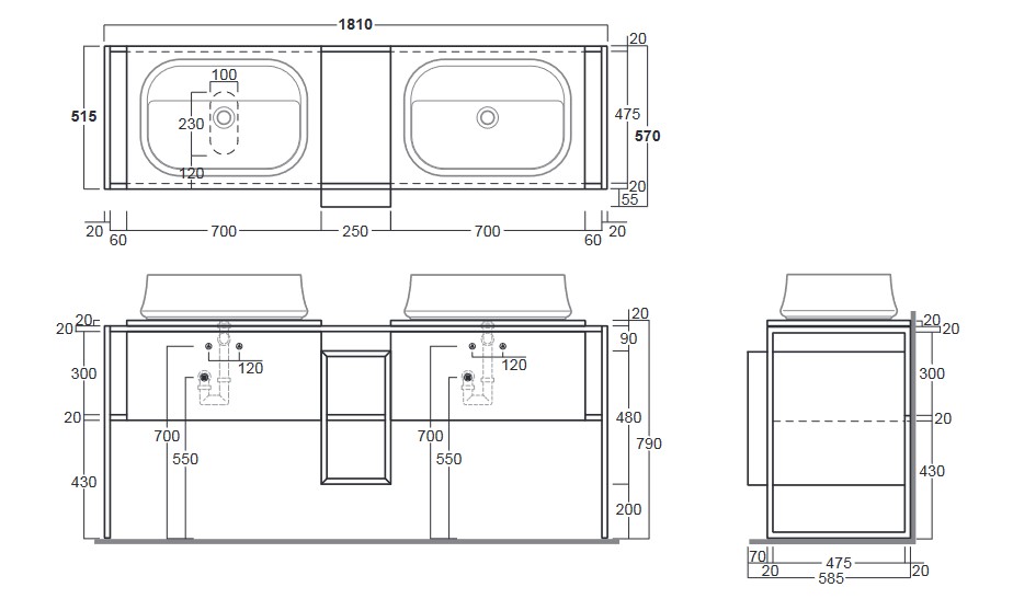 Simas Sharp Szafka podwójna umywalkowa 181x57x72 cm frassino grigio/bianco matt FM2