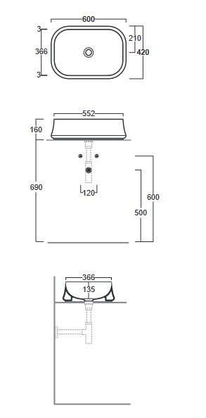Simas Sharp Umywalka stawiana na blat 60x42x16 cm moka matt SH08.59