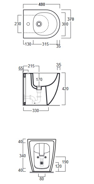 Simas Vignoni Bidet XS stojący z otworem na baterię 37x48x42 cm biały VI27
