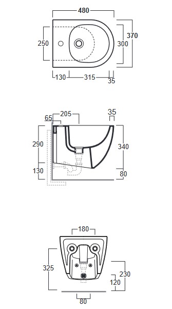 Simas Vignoni Bidet XS wiszący z otworem na baterię 37x48x34 cm biały VI29