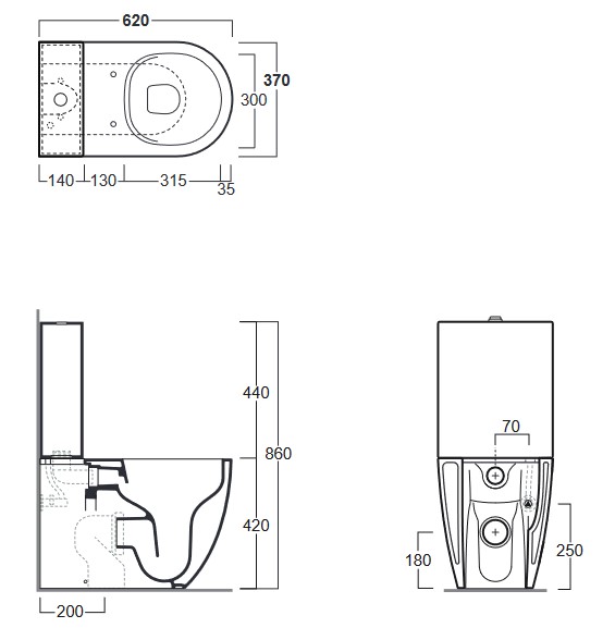 Simas Vignoni Spłuczka typu monoblok z przyciskiem do WC VI07 37x14x44 cm biały VI09/D20