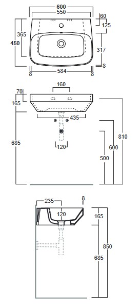 Simas BadenBaden Umywalka stawiana na blat/wisząca z otworem na baterię 60x45x16,5 cm biały BB10