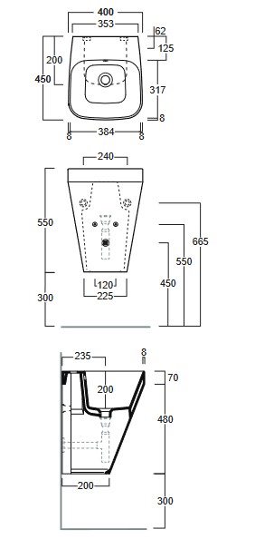 Wymiary: Szerokość: 45 cm Długość: 40 cm Wysokość: 55 cm W komplecie z zestawem montażowym F87