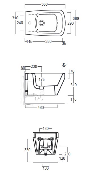 Simas BadenBaden Bidet wiszący z otworem na baterię 56x36x31 cm biały BB19