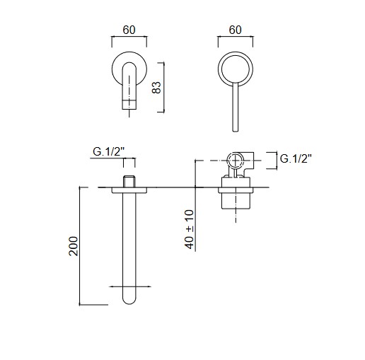 Simas Tokyo Bateria umywalkowa ścienna wylewka 20 cm chrom TOMMLM.CC