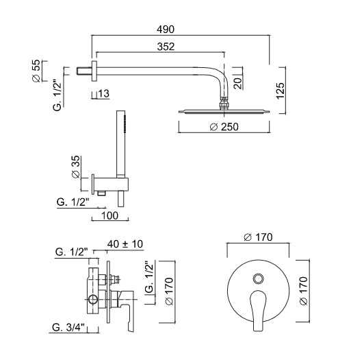 Simas Oslo Zestaw prysznicowy podtynkowy z przełącznikiem, ramieniem, deszczownicą i słuchawką z uchwytem chrom OSSDID.CCKolor: Chrom