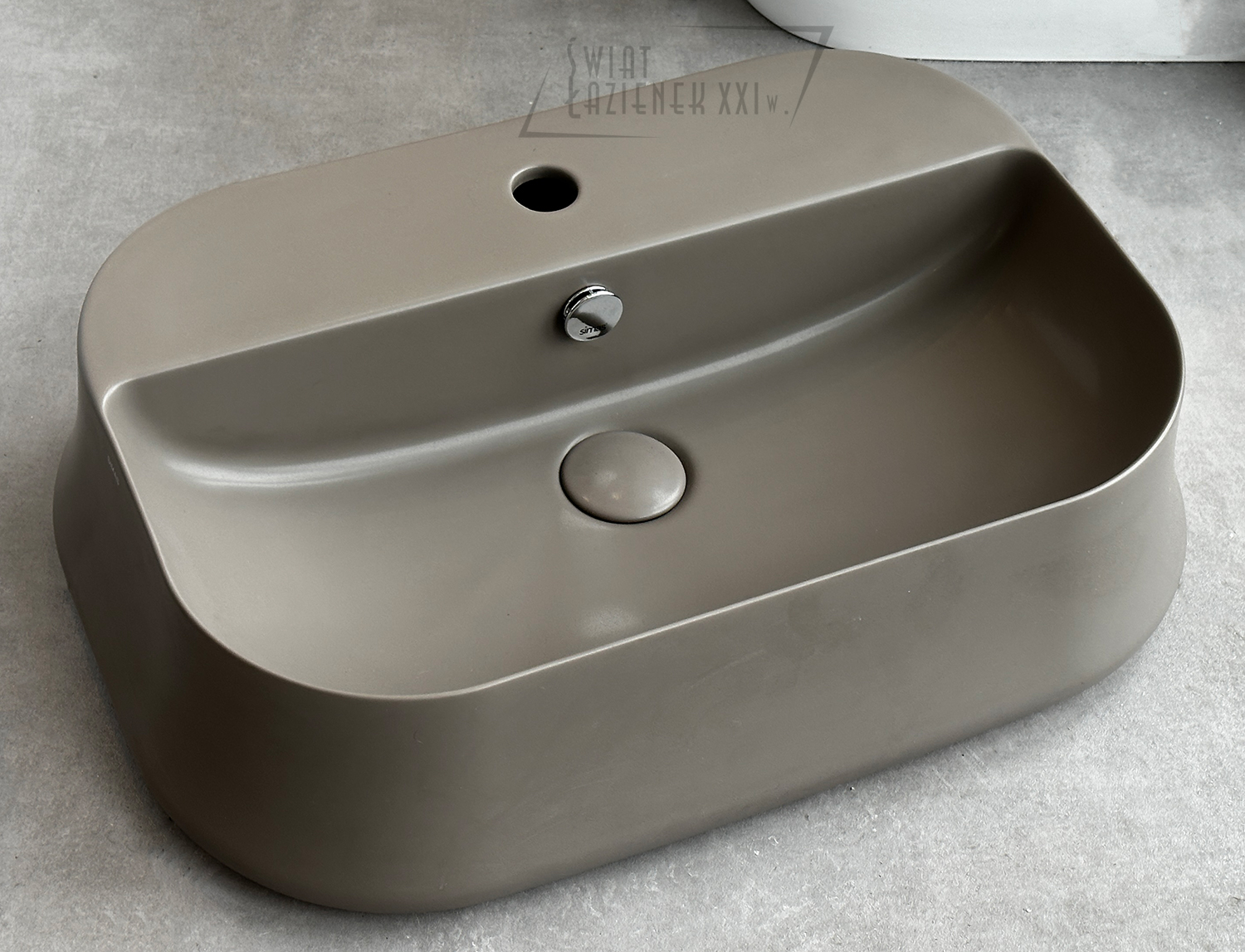 Simas Sharp Umywalka stawiana na blat 60x42 cm z korkiem klik klak Moka matt SH09.68+PLCE.68