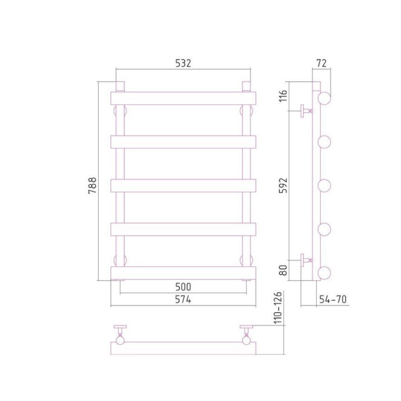 Sunerzha Atlant Grzejnik łazienkowy ścienny 78,8x57,4 cm Stal polerowana 50440
