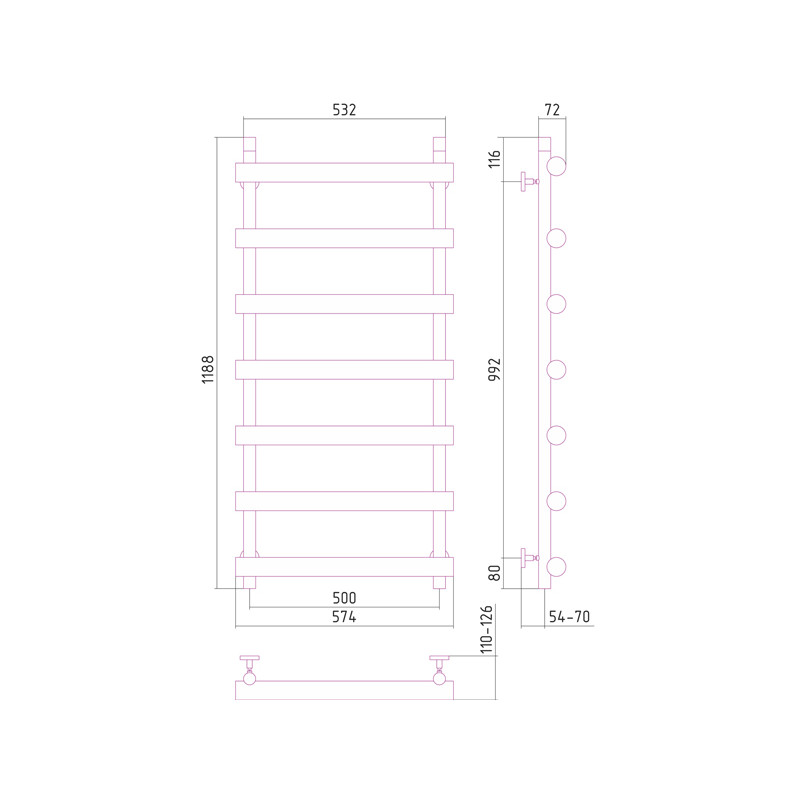 Sunerzha Atlant Grzejnik łazienkowy ścienny 118,8x57,4 cm Stal polerowana 50442
