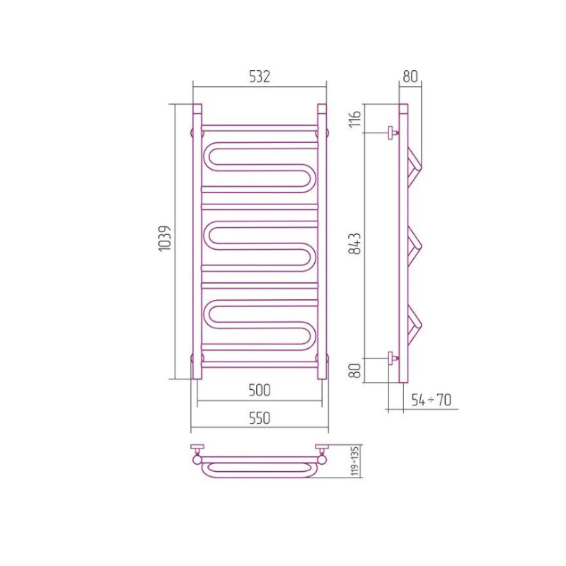 Sunerzha Elegy Grzejnik łazienkowy ścienny 103,9x53,2 cm Stal polerowana 50037