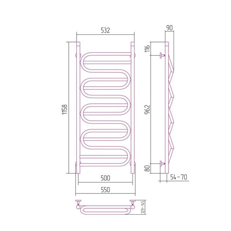 Sunerzha Elegy Verso Grzejnik łazienkowy ścienny 115,8x53,2 cm Stal polerowana 50044
