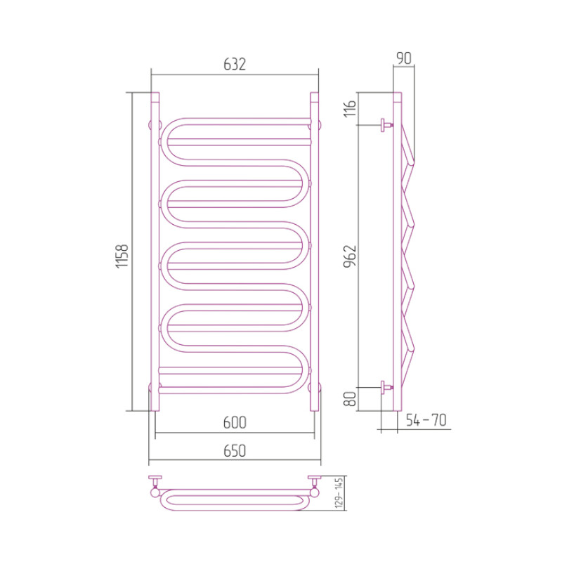 Sunerzha Elegy Verso Grzejnik łazienkowy ścienny 115,8x65,8 cm Kameleon 54045