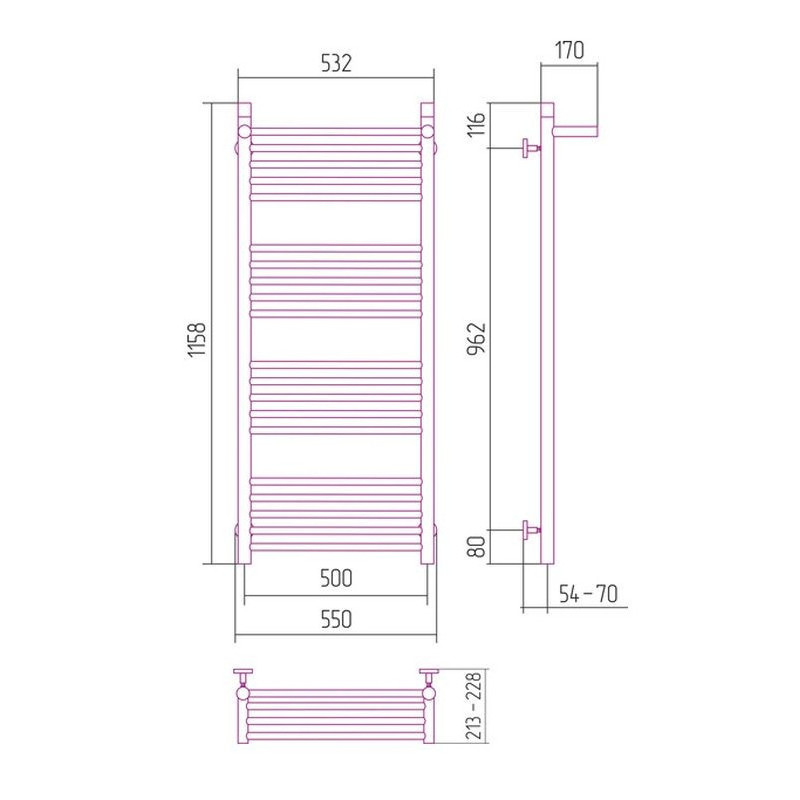 Sunerzha Bohemia P1 Grzejnik łazienkowy ścienny 115,8x53,2 cm Stal polerowana 50309