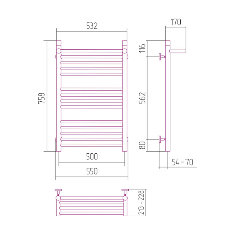 Sunerzha Bohemia P1 Grzejnik łazienkowy ścienny 75,8x53,2 cm Czarna perła 55307