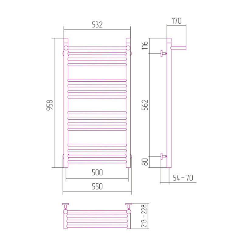 Podłączenie: dolne / pionowe / Po przekątnej