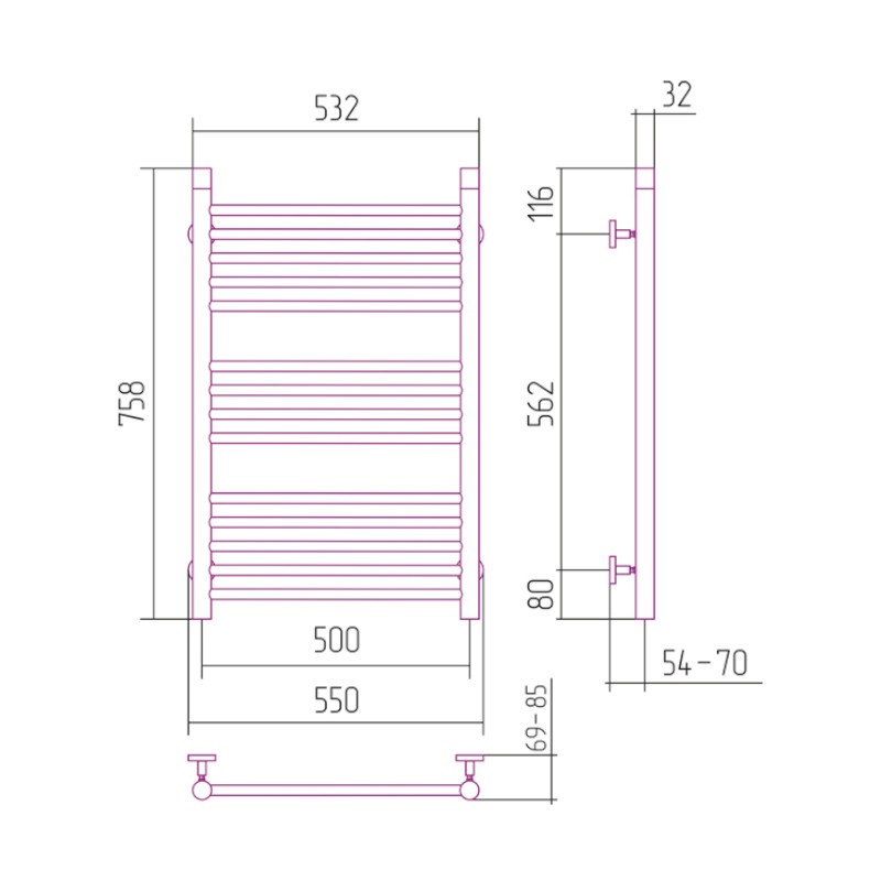 Sunerzha Bohemia Grzejnik łazienkowy ścienny 95,8x43,2 cm Stal polerowana 50207