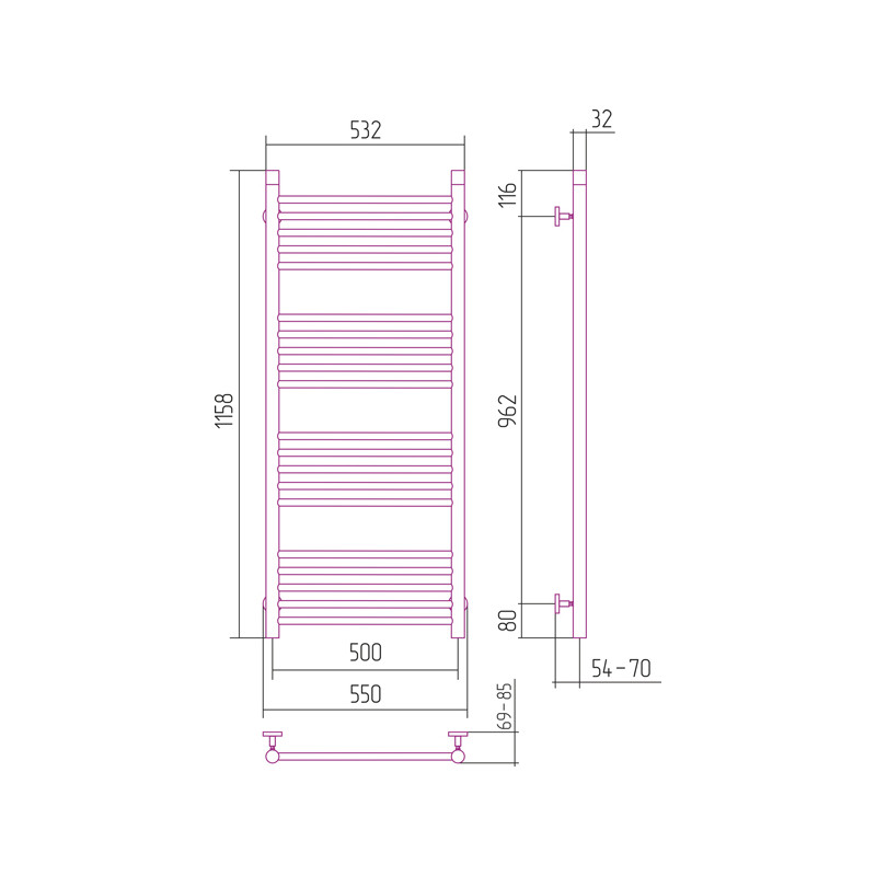 Sunerzha Bohemia Grzejnik łazienkowy ścienny 115,8x53,2 cm Stal polerowana 50214