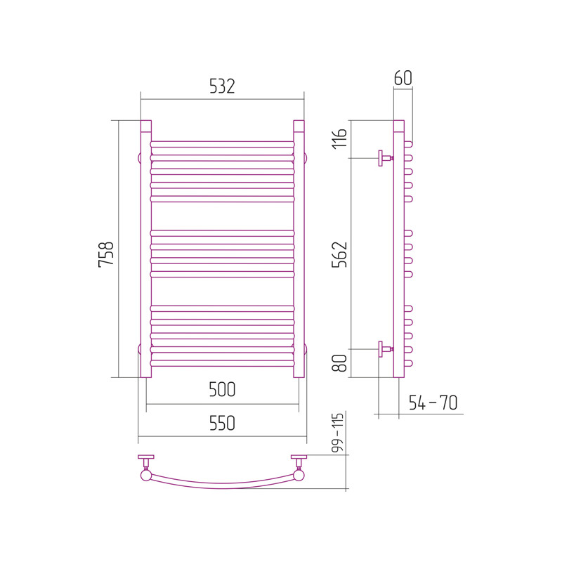 Sunerzha Bohemia ARC Grzejnik łazienkowy ścienny 75,8x53,2 cm Stal polerowana 50107
