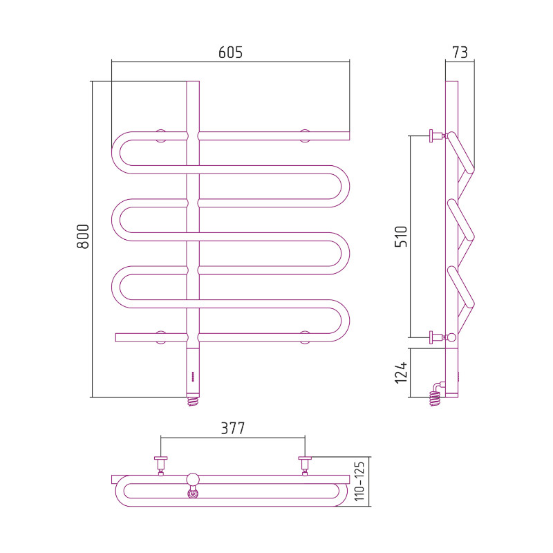 Grzejnik wyposażony jest w kabel z wtyczką do gniazda 230V. Posiada wbudowaną grzałkę ze sterownikiem z funkcją regulacji temperatury oraz tajmerem.