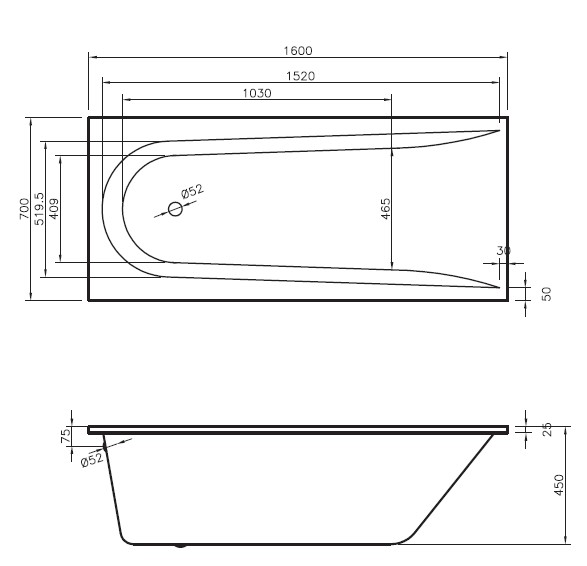 Istnieje możliwość zakupu wanny w rozmiarze: