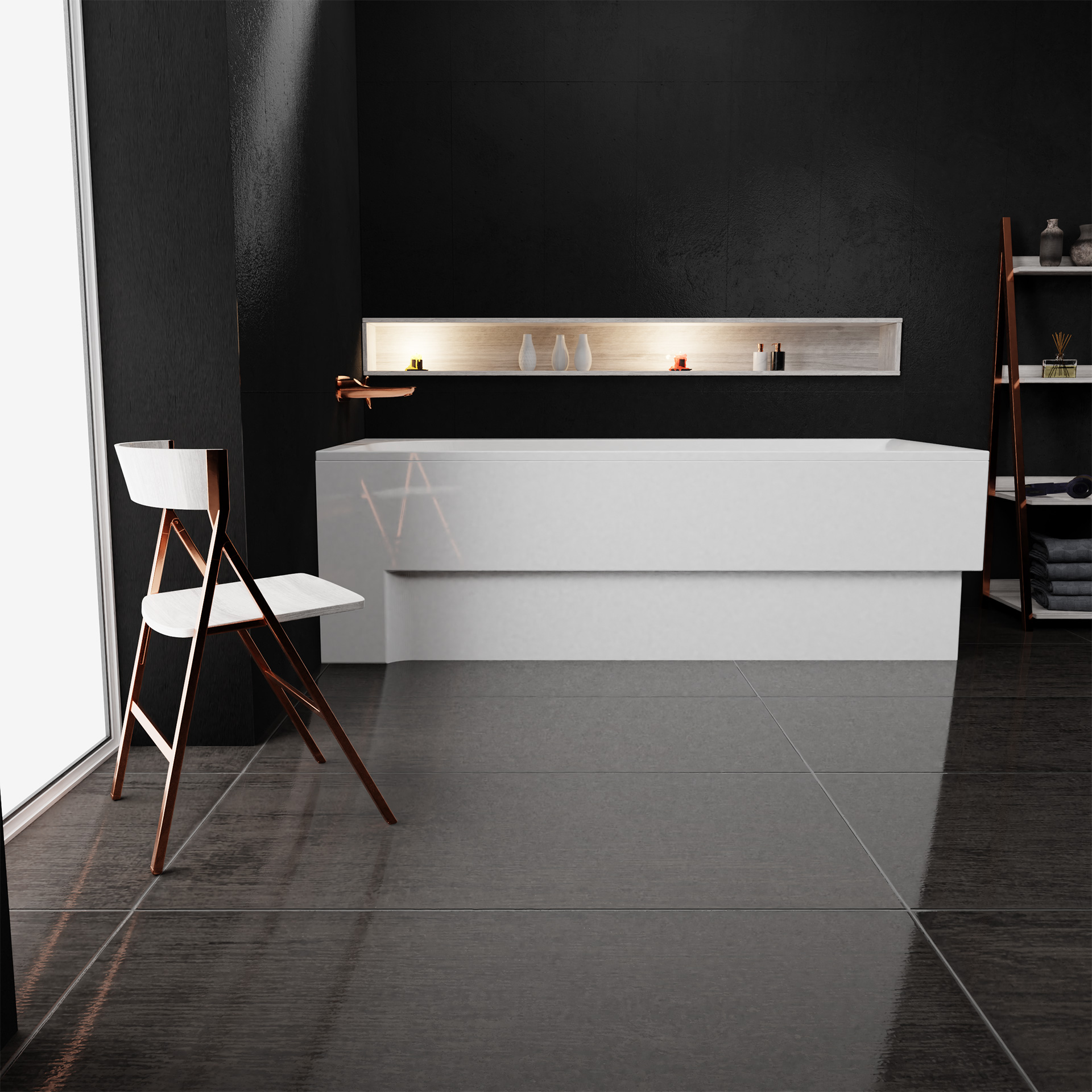 Zestaw: Wanna Boomerang lewa ze stelażem, nóżkami oraz syfonem automatycznym z przekręcanym pokrętłem do zamykania odpływu wody