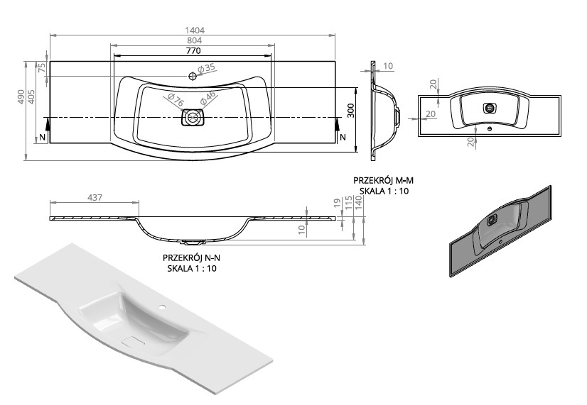 Istnieje możliwość zakupu umywalki w rozmiarze: 160,4x49 cm