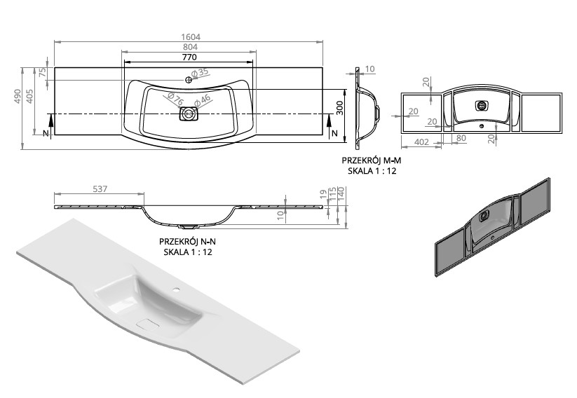 Istnieje możliwość zakupu umywalki w rozmiarze: 140,4x49 cm