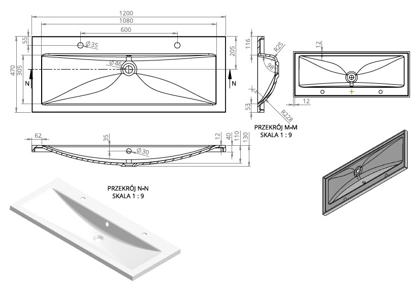Istnieje możliwość zakupu umywalki w rozmiarze: