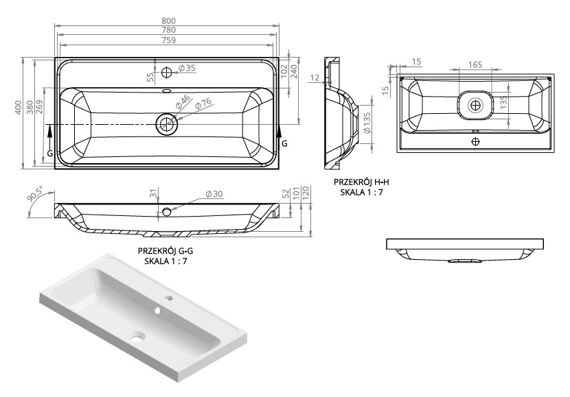 Istnieje możliwość zakupu umywalki w rozmiarze: