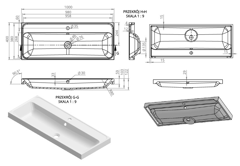 Istnieje możliwość zakupu umywalki w rozmiarze: