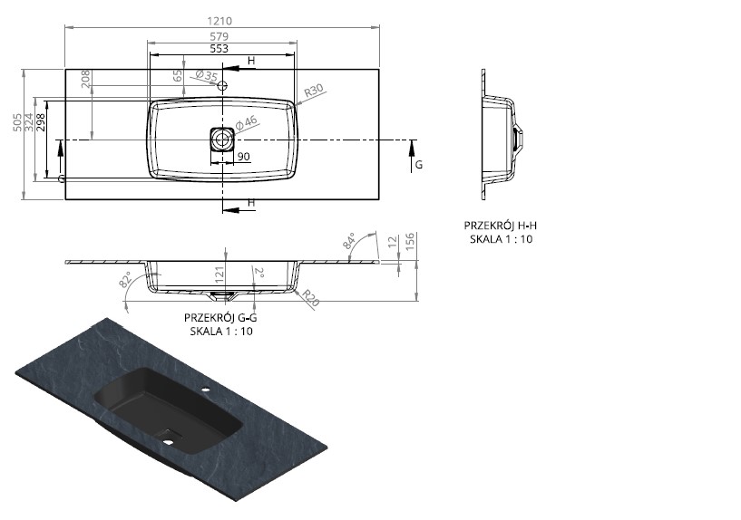 Istnieje możliwość zakupu umywalki w rozmiarze: 270x50,5 cm