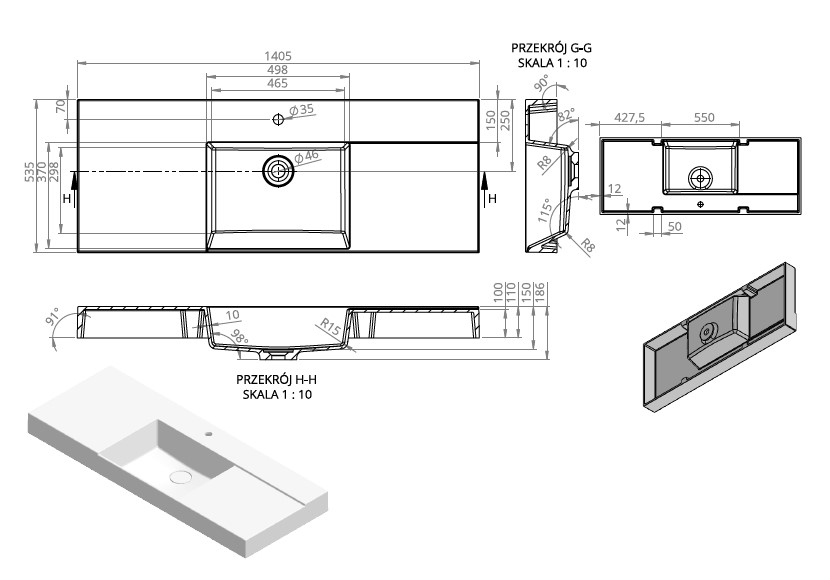 Istnieje możliwość zakupu umywalki w rozmiarze: