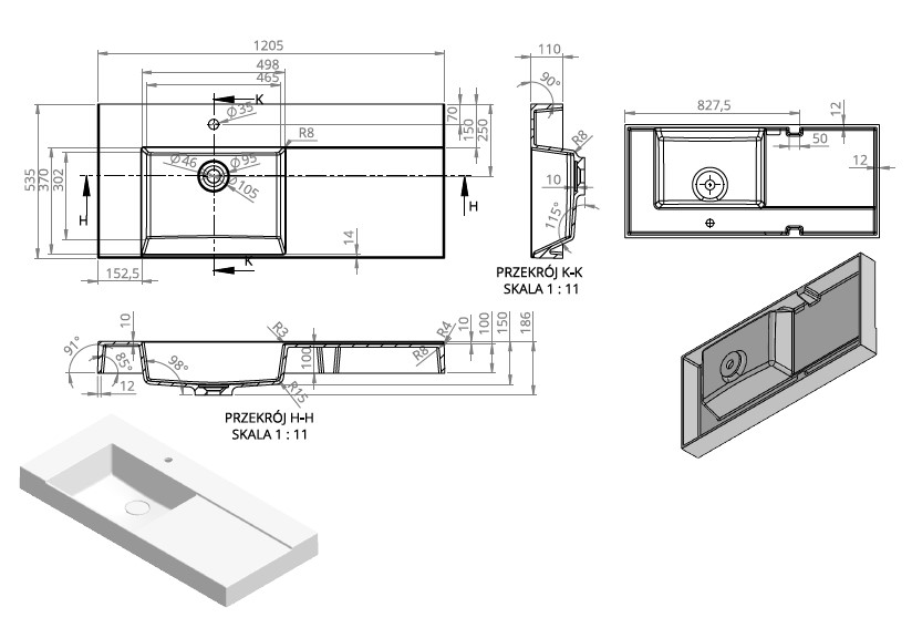 Istnieje możliwość zakupu umywalki w rozmiarze: