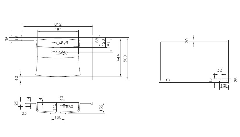 Wymiary: 81,2x50 cm Istnieje możliwość zakupu umywalki w rozmiarze: 61,2x50 cm 91,2x50 cm 101,2x50 cm 121,2x50 cm 161,2x50 cm 191,2x50 cm 324x50 cm Cena dotyczy umywalki