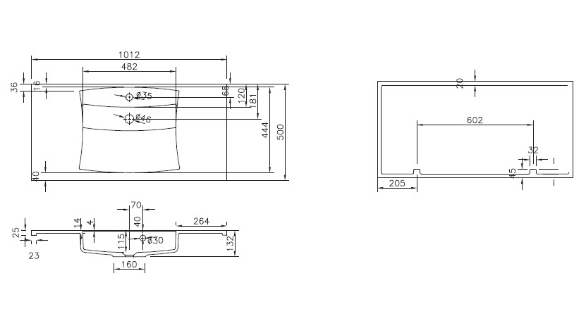 Wymiary: 101,2x50 cm Istnieje możliwość zakupu umywalki w rozmiarze: 61,2x50 cm 81,2x50 cm 91,2x50 cm 121,2x50 cm 161,2x50 cm 191,2x50 cm 324x50 cm Cena dotyczy umywalki