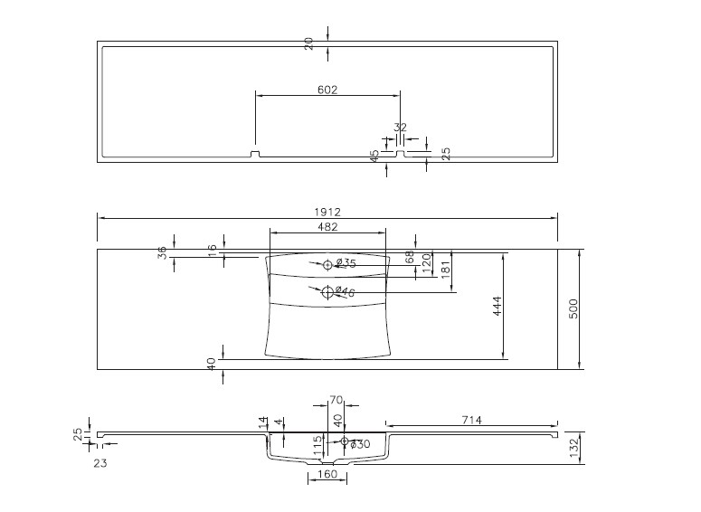 Wymiary: 191,2x50 cm Istnieje możliwość zakupu umywalki w rozmiarze: 61,2x50 cm 81,2x50 cm 91,2x50 cm 101,2x50 cm 121,2x50 cm 161,2x50 cm 324x50 cm Cena dotyczy umywalki