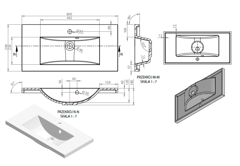 Istnieje możliwość zakupu umywalki w rozmiarze: