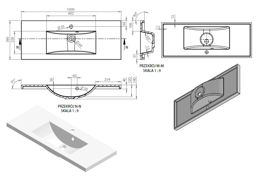 Istnieje możliwość zakupu umywalki w rozmiarze: