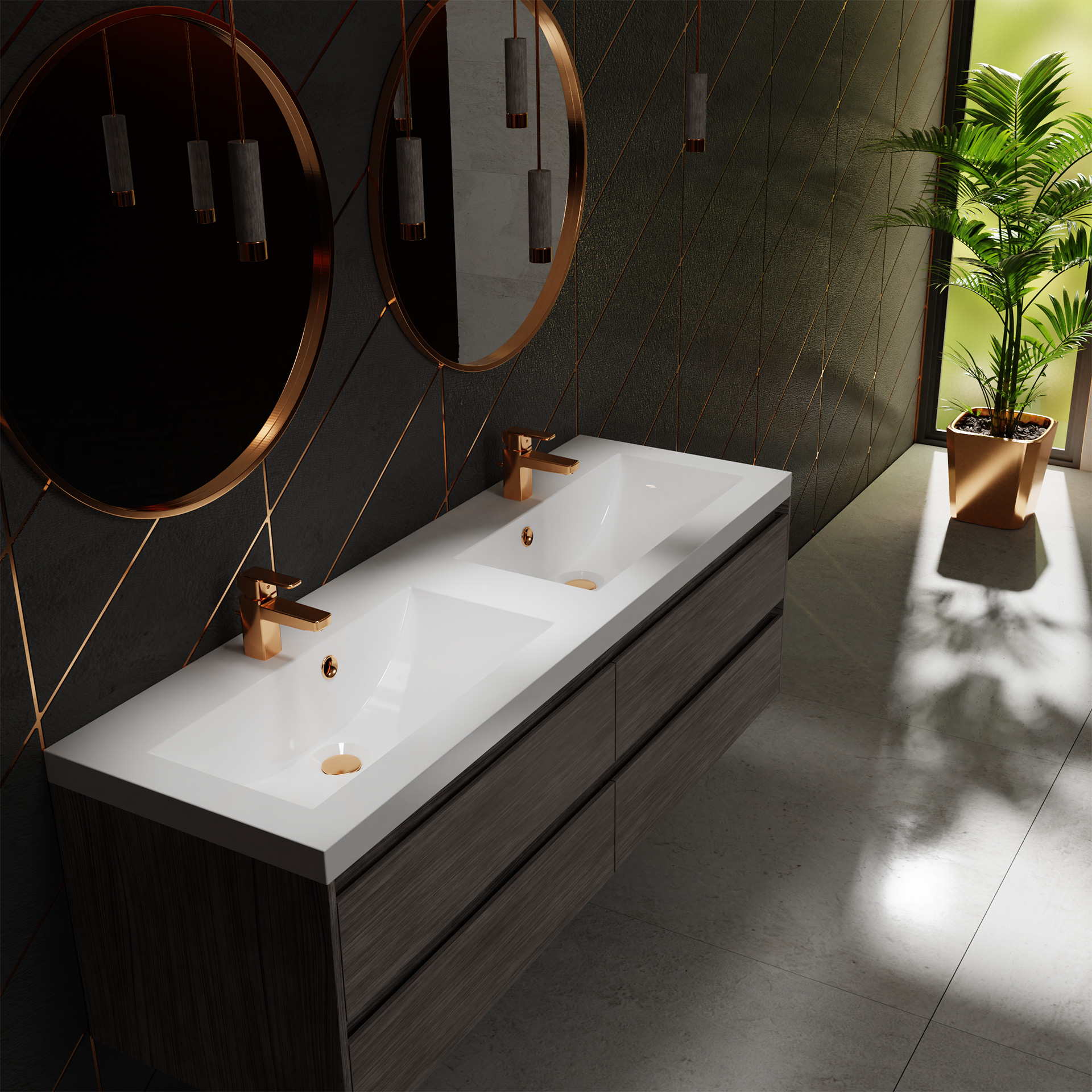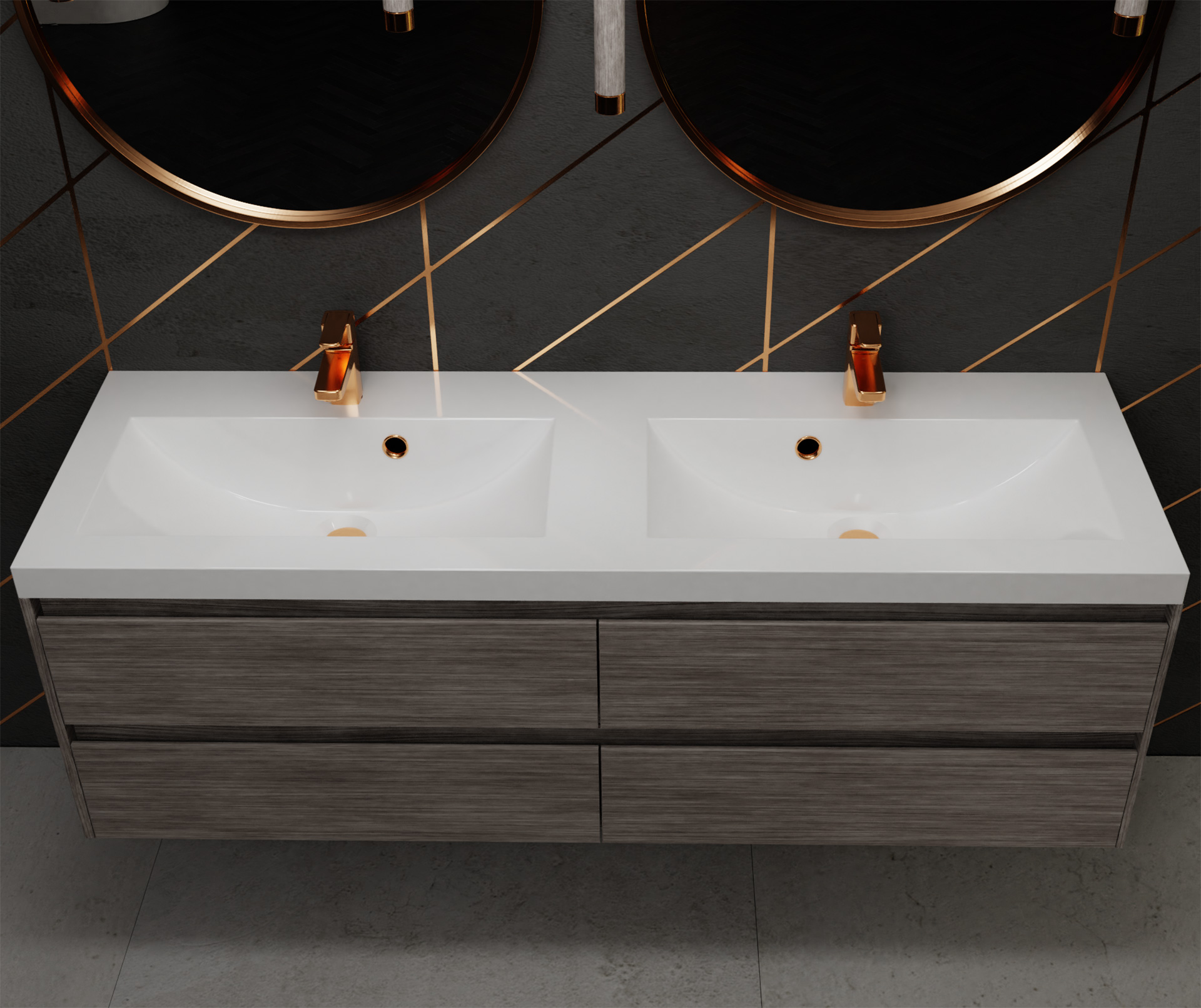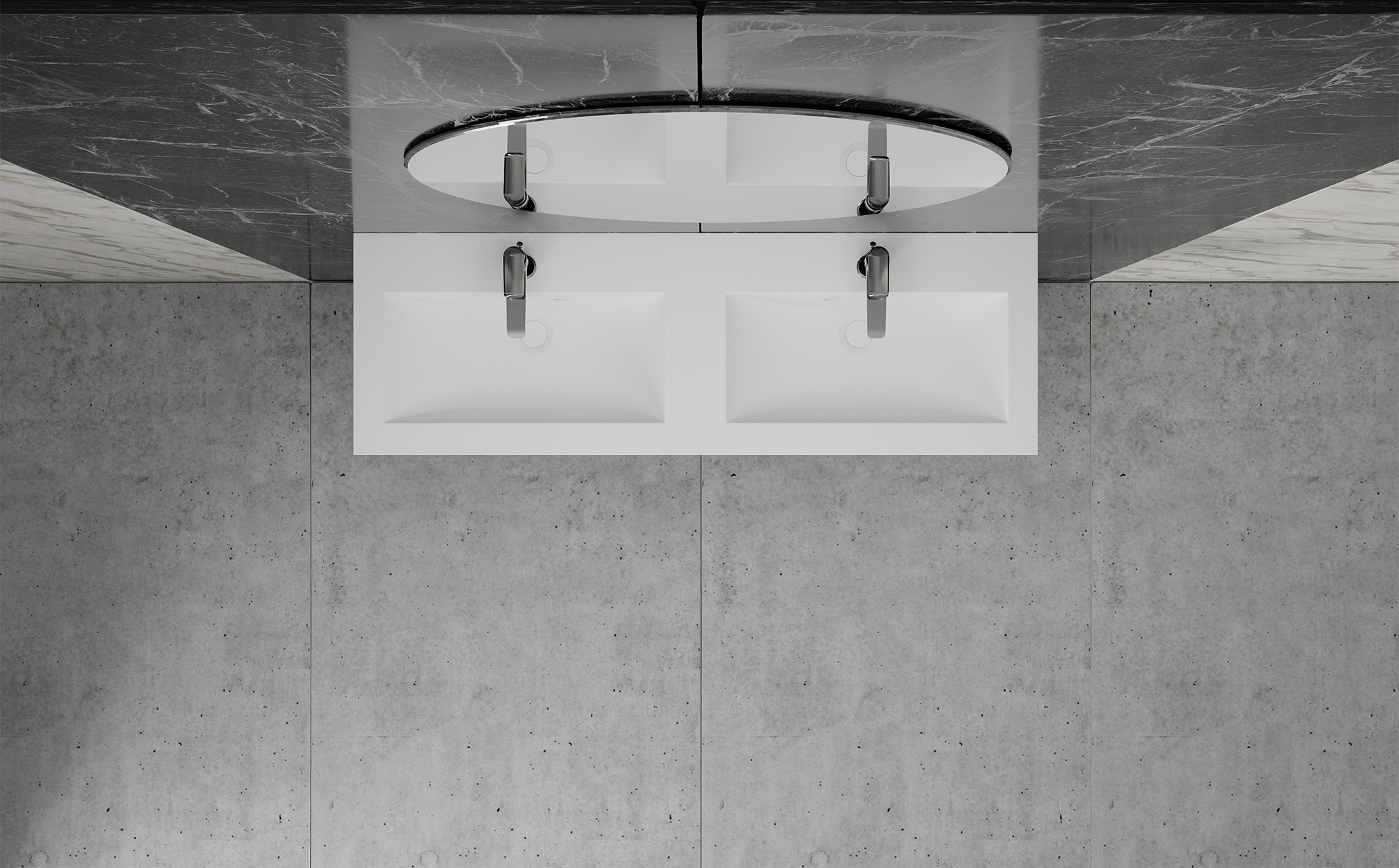 Vayer Pegasus-D Umywalka wpuszczana w blat podwójna z dwoma otworami na baterię 120x39 cm biała 120.039.012.3-1.0.1.X.X