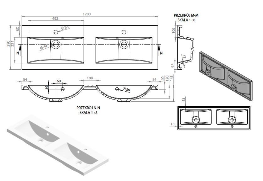 • Montaż: Wpuszczany w blat