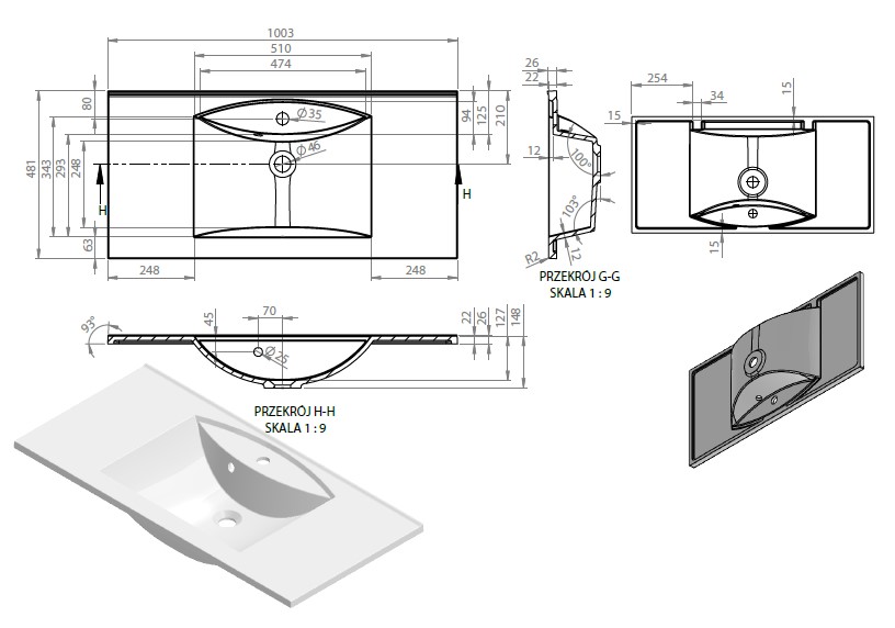 Istnieje możliwość zakupu umywalki w rozmiarze: