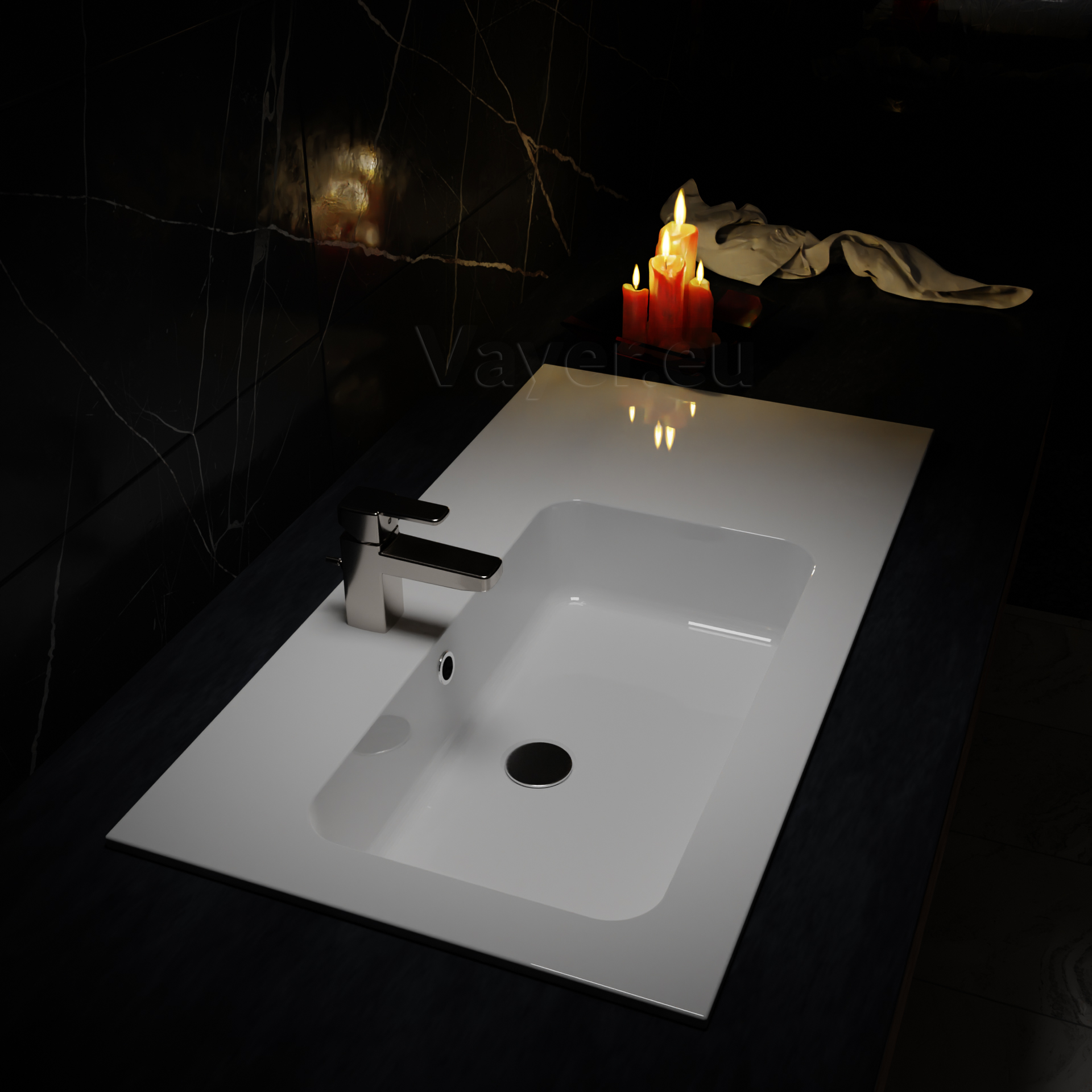 Vayer Tucana Umywalka wpuszczana w blat lewa z otworem na baterię 105,5x50,5 cm biała 105.050.012.3-1.0.1.X.X