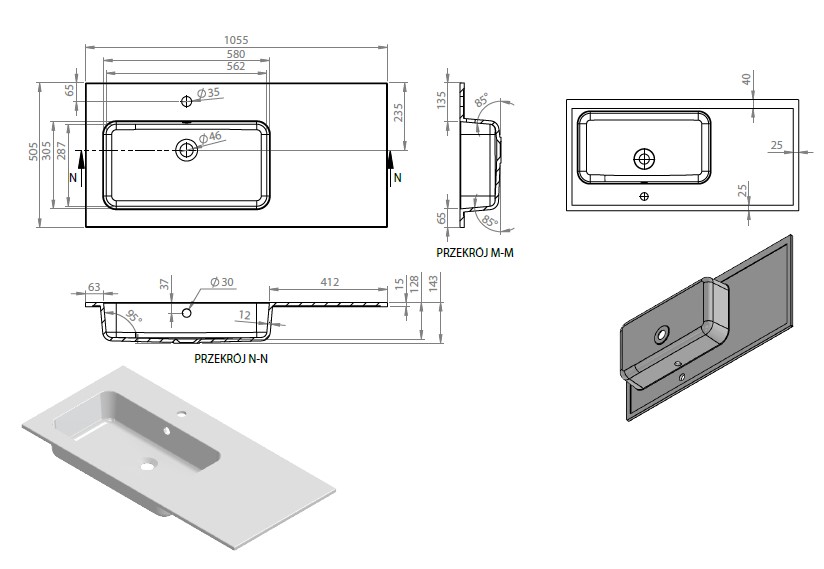 • Montaż: Wpuszczany w blat