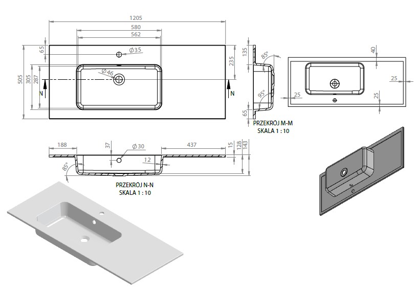 Istnieje możliwość zakupu umywalki w rozmiarze: