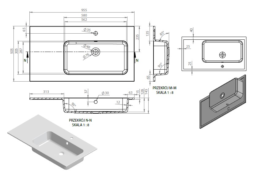 Istnieje możliwość zakupu umywalki w rozmiarze: