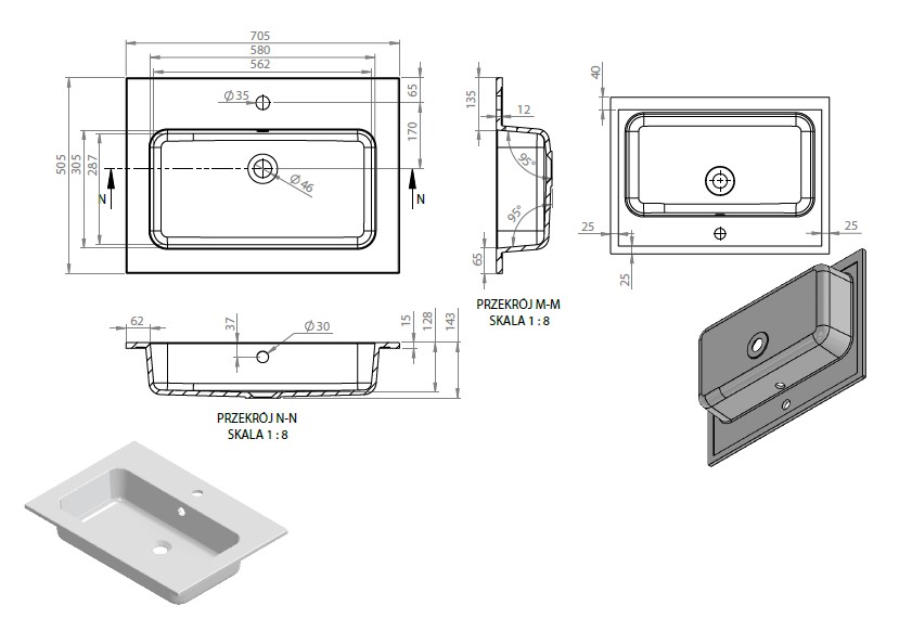 Istnieje możliwość zakupu umywalki w rozmiarze: