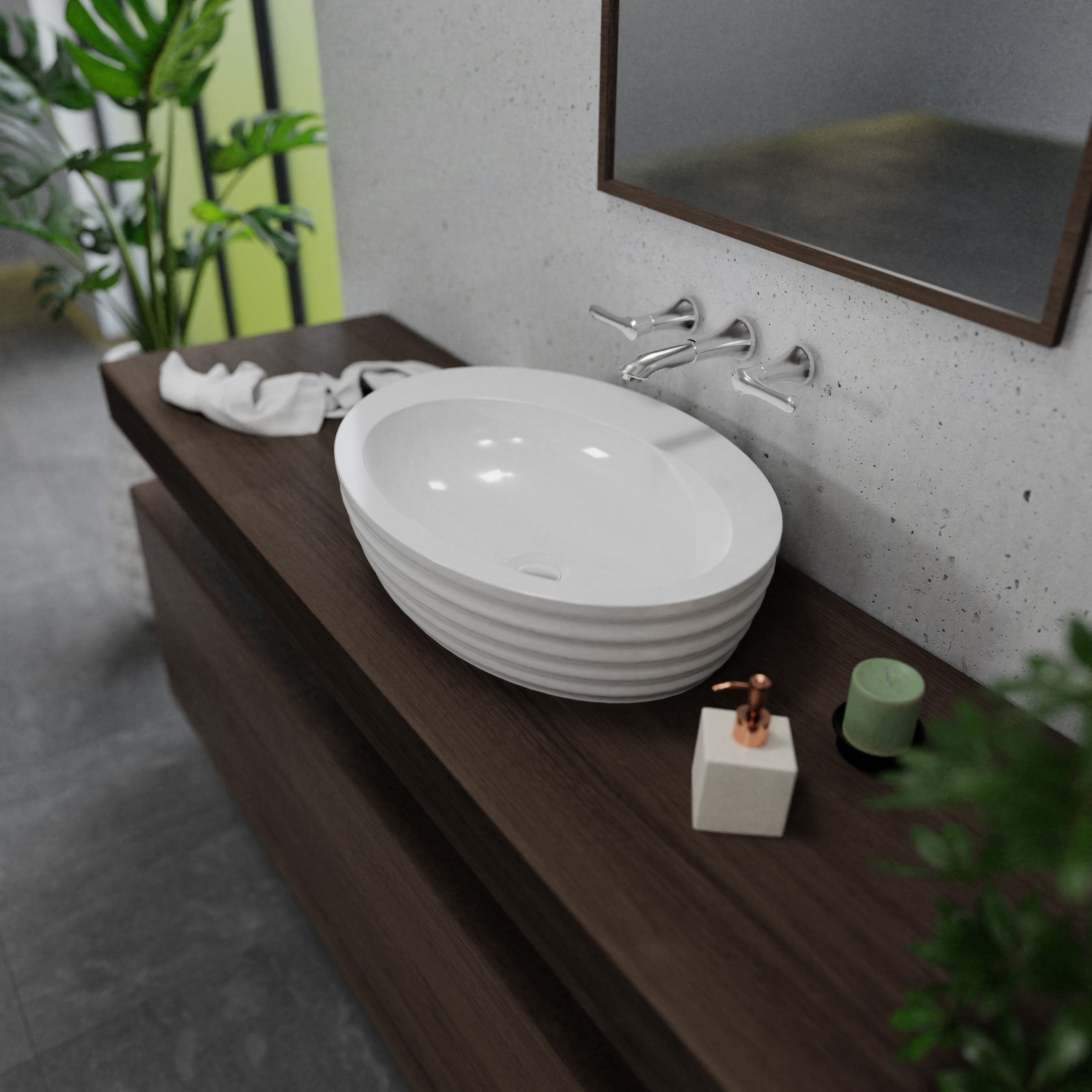 Vayer Boomerang Umywalka nablatowa owalna wysoka bez otworu na baterię 60x43 cm biała 060.043.012.3-4.0.3.0.0
